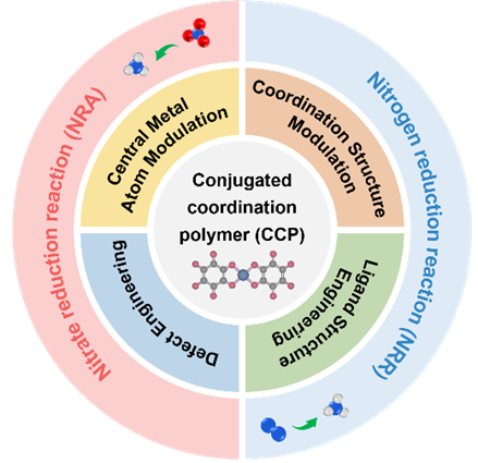 作为一类新兴催化剂,共轭配位聚合物(CCP)是共轭有机配体与金属节点之间的配位键形成扩展的共轭框架。金属中心与芳香配体之间的π-d相互作用进一步促进了电子离域,有利于电催化过程中快速的电子转移动力学,突破电合成氨反应中法拉第效率及氨产率低等问题。基于此,本课题组系统总结了共轭配位聚合物催化剂应用于电合成氨领域的最新研究进展,重点关注共轭配位聚合物催化剂材料的设计策略(中心金属原子调控、配位结构调控、配体结构设计和缺陷工程)。此外,本综述论文讨论分析了共轭配位聚合物催化剂应用于电合成氨领域的挑战和机遇。