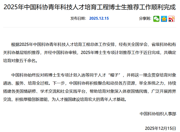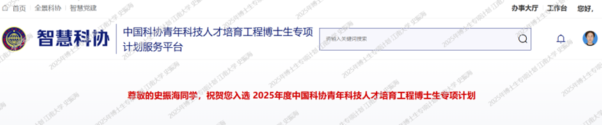 祝贺史振海同学入选2025年度中国科协青年科技人才培育工程博士生专项计划